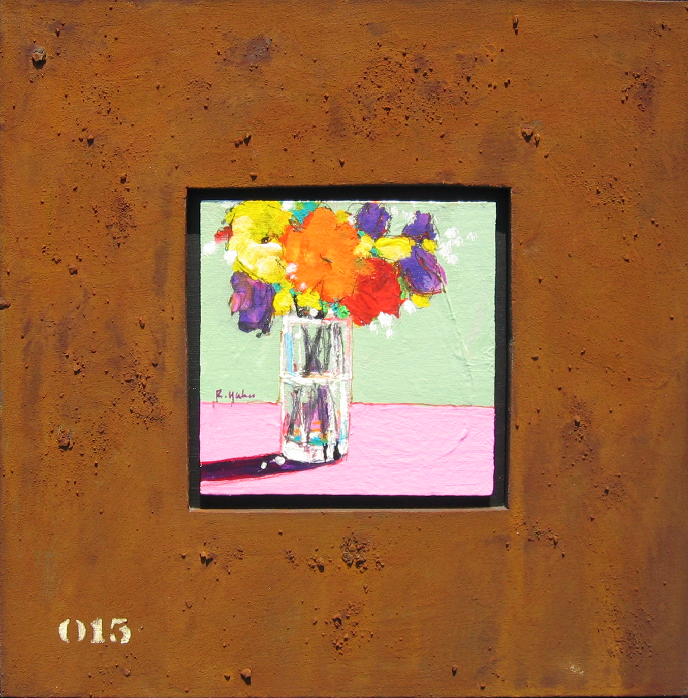 I don’t normally paint everyday but since my days are numbered this will be #2. I painted it yesterday. It’s a flower painting and I made the frame because I have trouble finding a frame that looks good with my art. It’s a wooden frame painted to look like rust. Hope you like it.